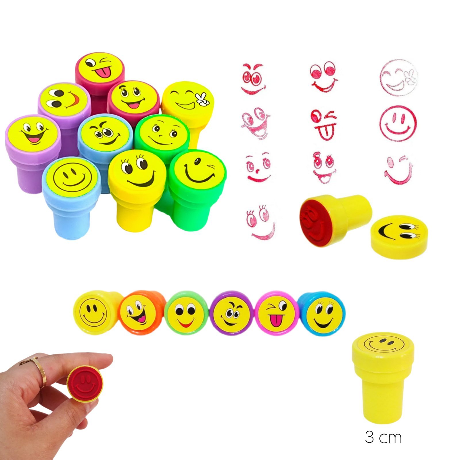 كل ختم بيطبع وجه تعبيري مختلف بألوان زاهية تضيف متعة لاي ورقة او دفتر